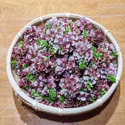 • 先端が咲いておらず緑色の蕾の部分は、酢漬けやお茶などにしても、青っぽい味がしますので、用途によっては、開いた花の方が適しています。