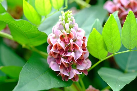 7月下旬から9月上旬くらいまで花が咲きます。花の形が美しく色鮮やかで、アピオスの芋からは想像もつかないきれいな花です。